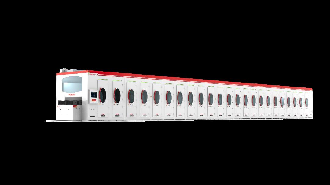 本次交付的二代超大產(chǎn)能濕法清洗設(shè)備采用多項自主研發(fā)設(shè)計,適用于光伏TOPCON,XBC,HJT等電池工藝,尺寸兼容方片、矩形片及半片工藝清洗,產(chǎn)能≥18000PC/H,降低設(shè)備化學品單耗、設(shè)備能耗,提升濕法設(shè)備工藝穩(wěn)定性;采用高精度傳 動系統(tǒng),機械手智能化追蹤系統(tǒng),實時更貼近終端客戶使用現(xiàn)場。
